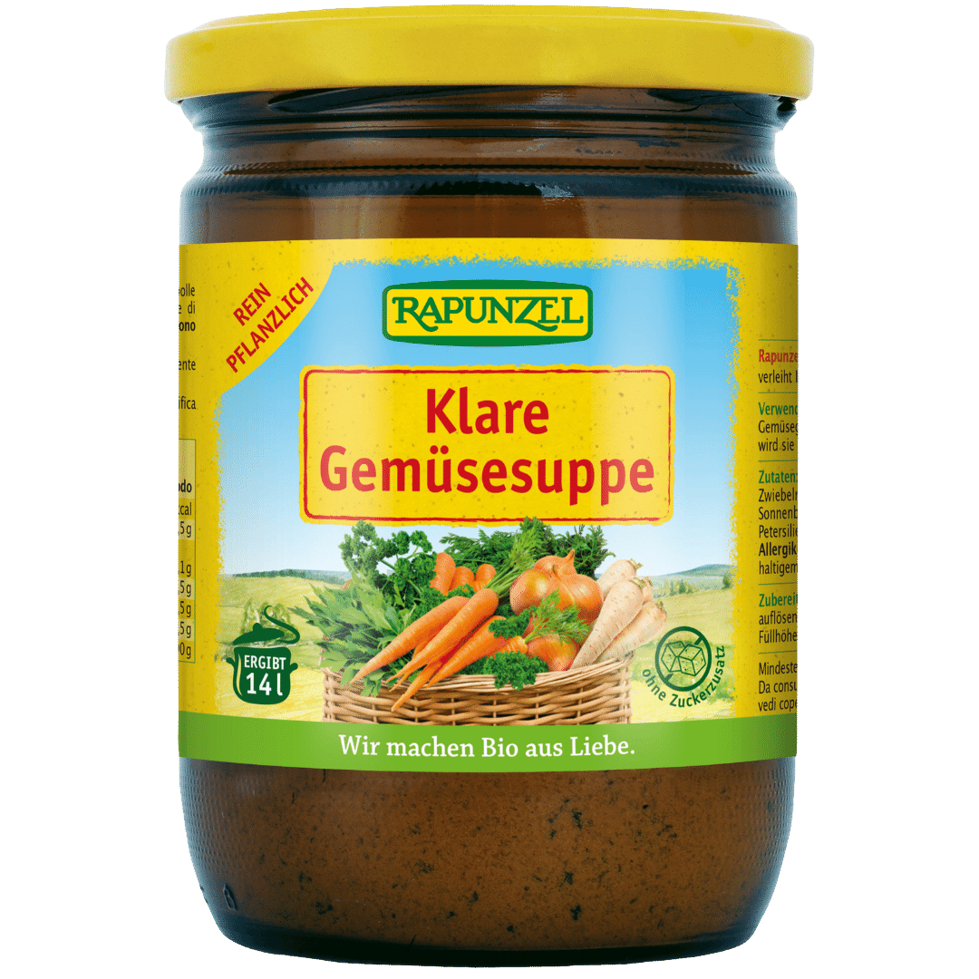 Herzhaft, pflanzlich und extra ergiebig: Die Bio Klare Suppe mit Bio-Hefe von Rapunzel ist ein echter Küchenklassiker für alle, die Wert auf Geschm…