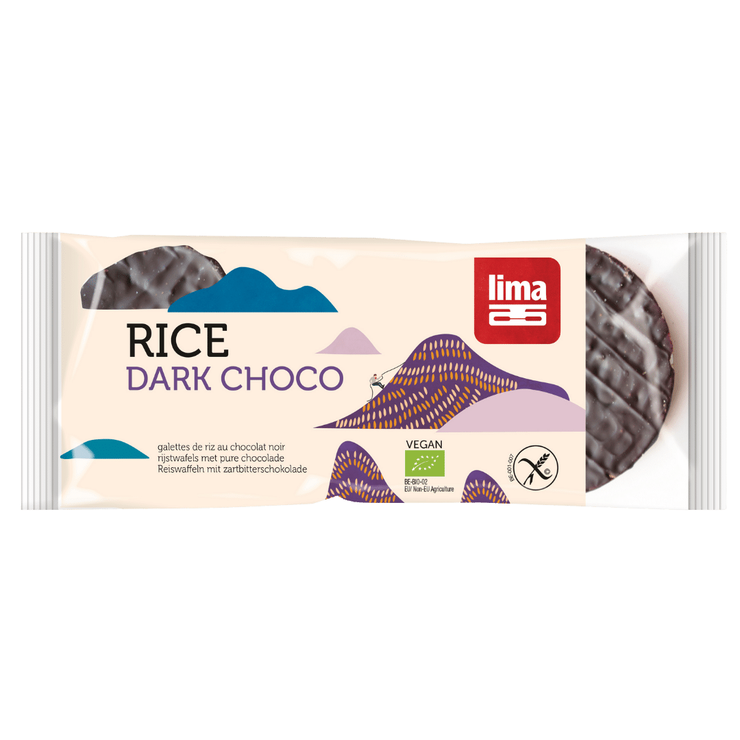 Lima Bio Reiswaffeln mit Schokolade vereinen knusprigen Vollkornreis mit einem Überzug aus Zartbitterschokolade. Die feine Kombination aus luftig-l…