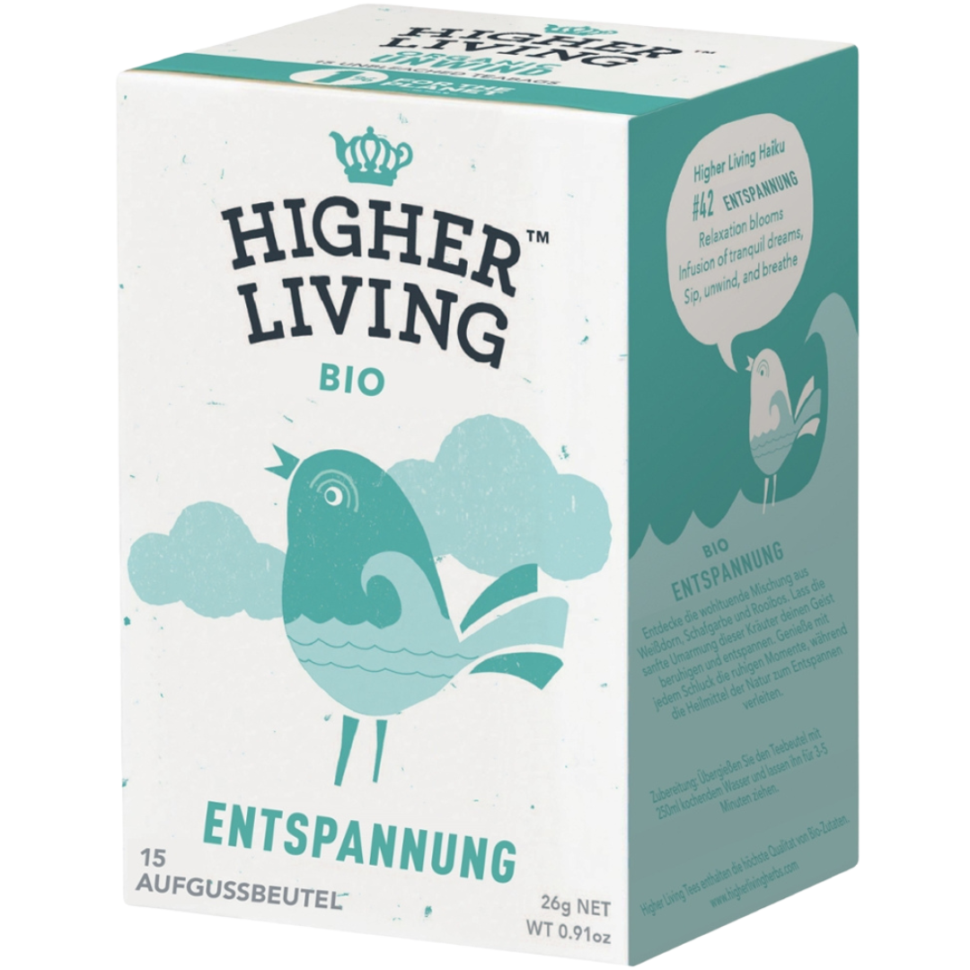 Der Higher Living Bio Tee „Entspannung“ ist eine sorgfältige Mischung aus erlesenen Kräutern, die dir bei einer Auszeit zur Ruhe verhelfen. Mit Zut…