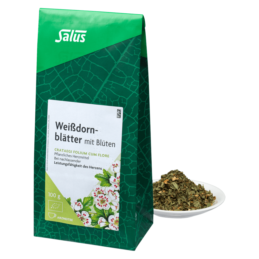 aus der Serie Salus® Tee in Premiumqualität, lose, im grünen Blockbodenbeutel CRATAEGI FOLIUM CUM FLORE – Pflanzliches Herzmittel Salus® Weißdornbl…