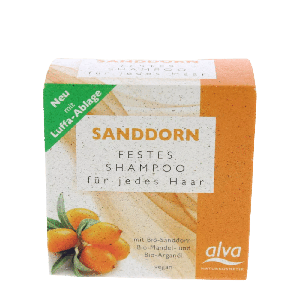 Das feste Sanddorn-Shampoo von alva verbindet sanfte Reinigung mit intensiver Pflege und einem belebenden Duft. Die pflanzlichen Tenside reinigen H…