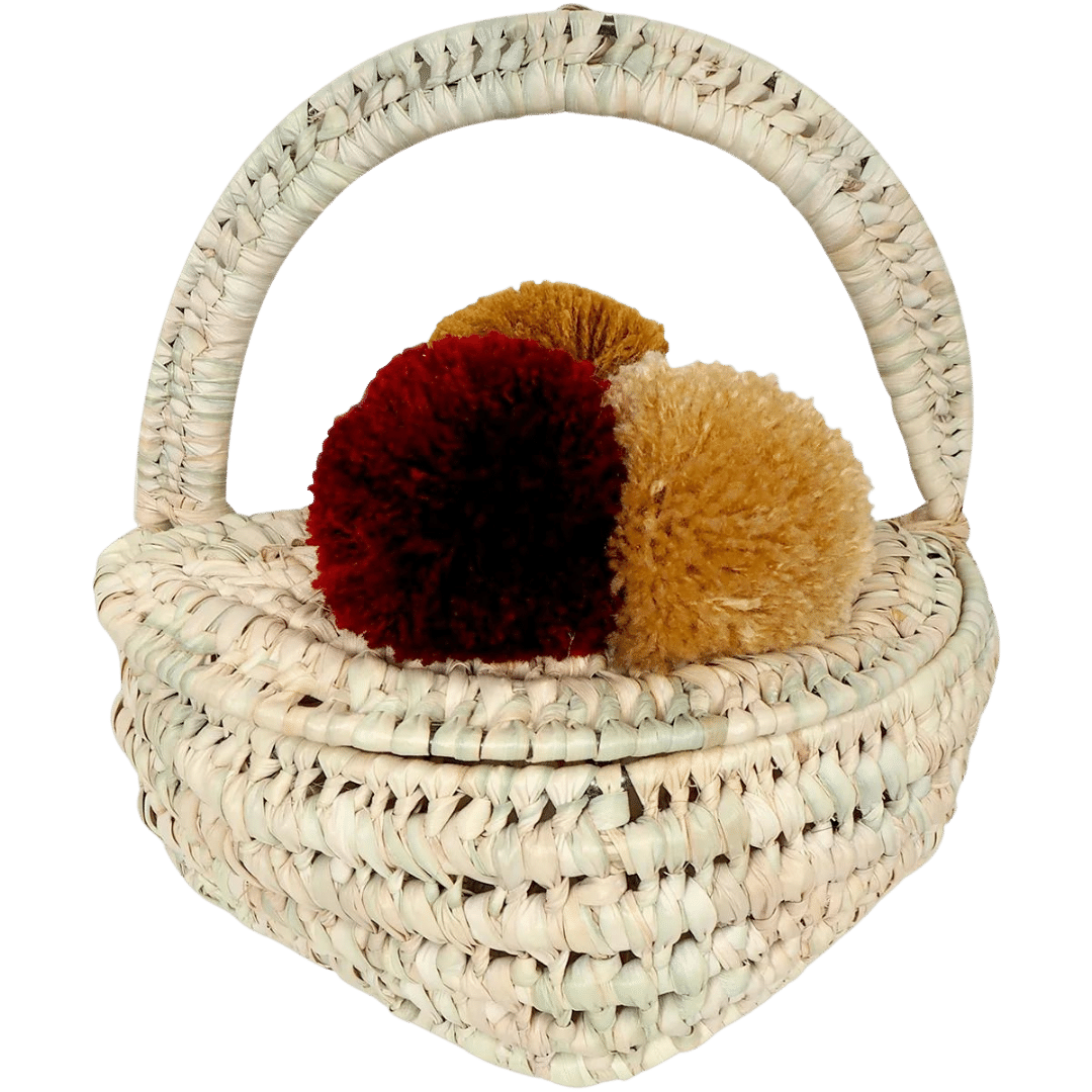 Entdecke den charmanten kleinen Hängekorb von Kikadu, der handgefertigt aus natürlichen Palmblättern ist. Dieses süße Deko-Accessoire, geschmückt m…