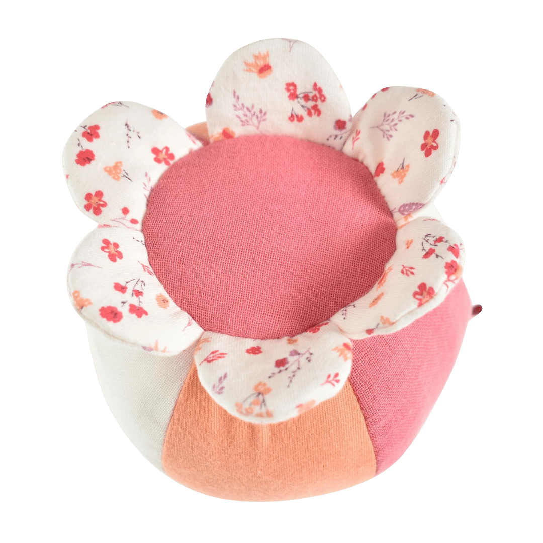 Der Kikadu rosa gestreifte Blumen-Rasselball ? Spielerische Förderung der Feinmotorik Der rosa gestreifte Blumen-Rasselball von Kikadu ist ein lieb…