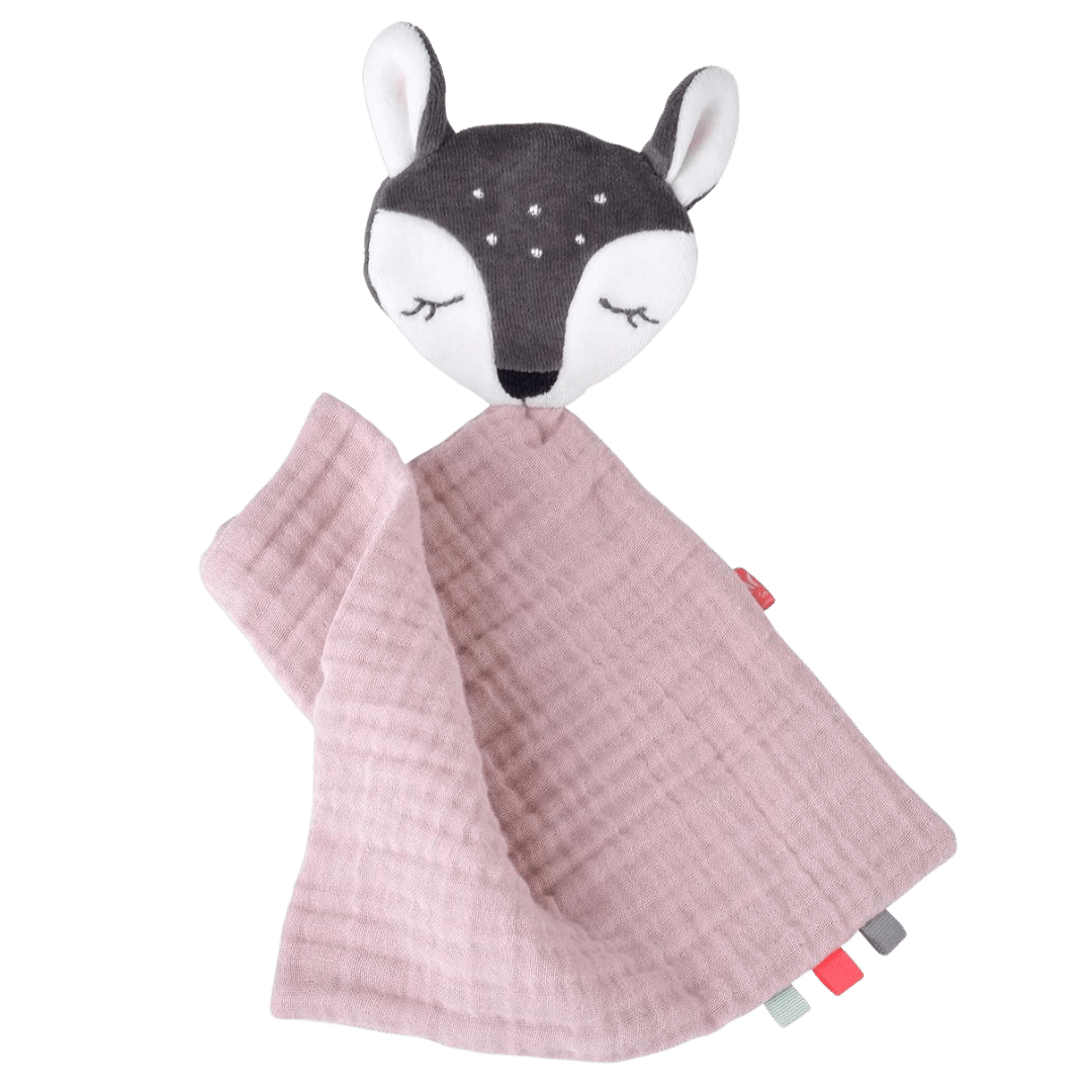 Das Schmusetuch von Kikadu ist durch sein natürliches Design mit verspielten Details, wie etwa dem niedlichen Rehkitz-Kopf, ein toller Freund für j…